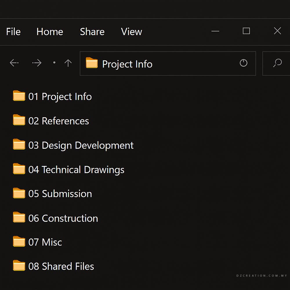 Whether you’re developing concept designs, preparing client submissions, or working on construction documentation, this pre-structured folder system helps keep your files organised, consistent, and easily accessible at every stage of the design process.